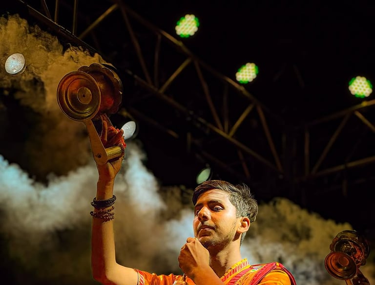 Experience the sacred Ganga Aarti by the riverbank in Varanasi, where tradition meets tranquility.
